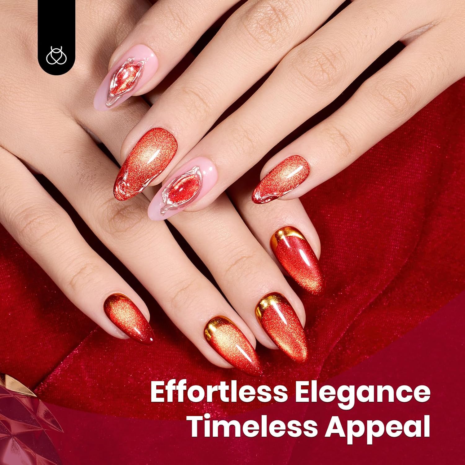 - 【Fashion Cat Eye Styles】Beetles 15ML Red Cat Eye Gel Nail Polish with Gold Powder! Enchanting red, shimmering like a ruby in a magical fairy tale! Creating your shining nail style to be more sparkling every day. The fun of cat eye nails lies in how customizable they can be, you only need a small magnet to create many effects.