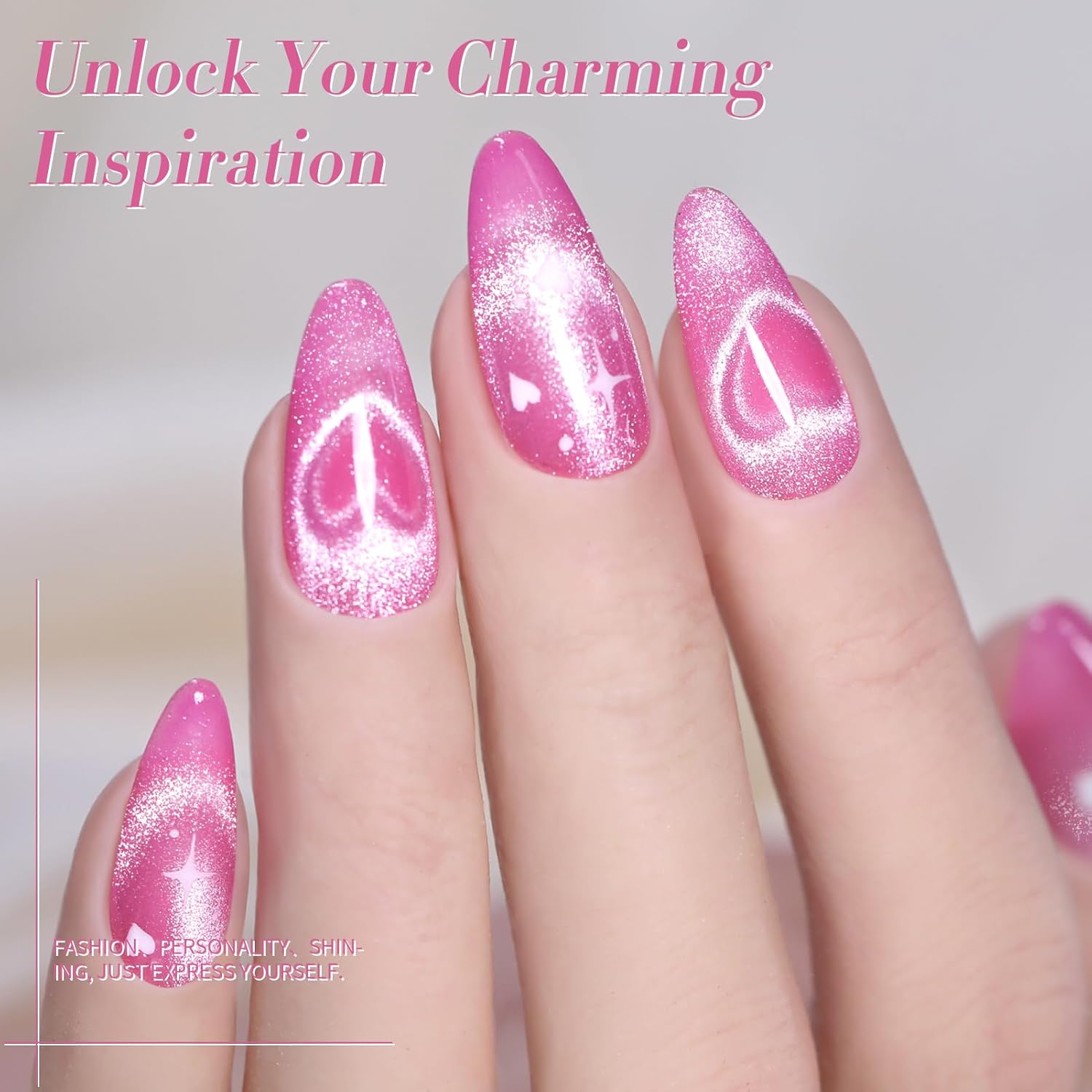 - PACKAGE CONTENTS: 1 bottle 15ml Cat Magnetic Eye Gel Nail Polish, compared with traditional, our magnetic gel nail polish has a higher gloss and silky effect, just like ceramic gloss, making your fingertips bloom with attractive charm. Use the magnet to create desired pattern before curing. Apply gel top coat for gorgeous shimmery and sparkly finish.