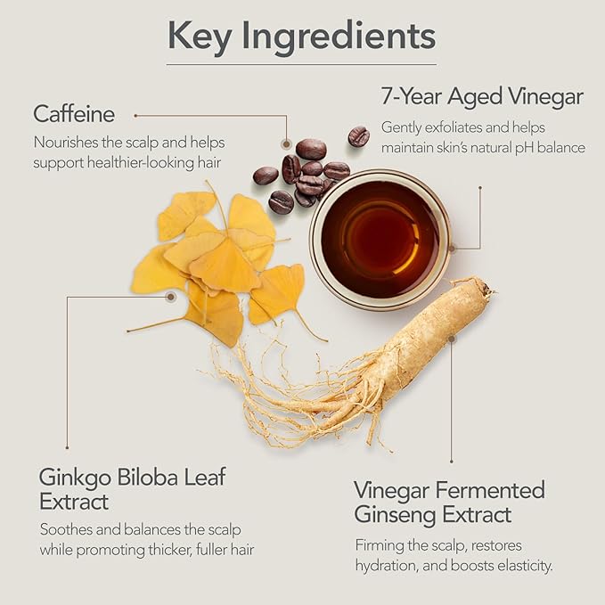 - FERMENTED INGREDIENTS FOR ENHANCED RESULTS : Formulated with VIN-H7, a 7-year fermented ginkgo vinegar, this shampoo is rich in probiotics, amino acids, and essential nutrients that hydrate and balance the scalp. It gently exfoliates, removes flakes and buildup, and helps restore volume, shine, and bounce.