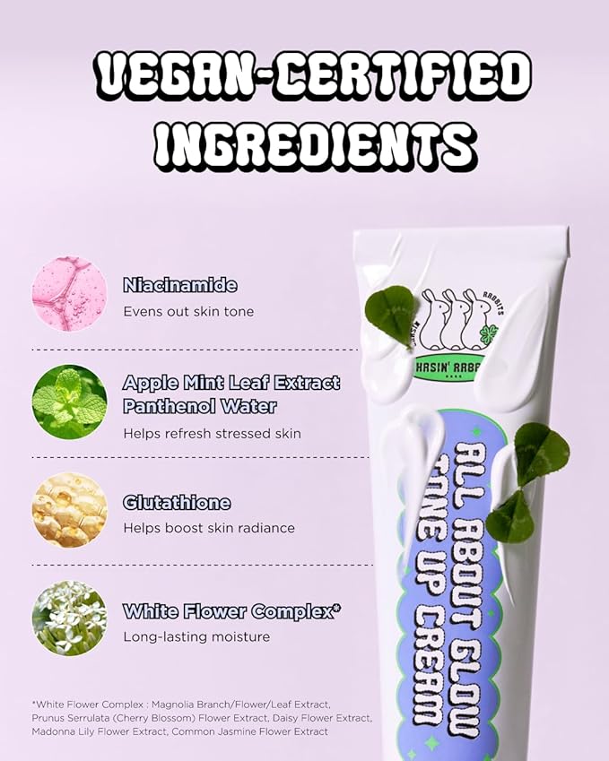 CHASIN' RABBITS All About Glow Tone-up Cream 1.69 fl. Oz, Natural Makeup Base, Dewy Hydration, Long-Lasting Makeup with Soft Texture, Korean Beauty
