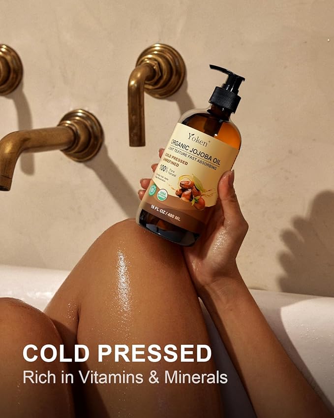 - 100% Organic Jojoba Oil: Yoken jojoba oil is proudly USDA Certified to meet the most rigorous standards and ultimate quality, cold pressed from responsibly grown organic jojoba seeds, extra virgin, and unrefined. Single Ingredient Oil, Chemical Free