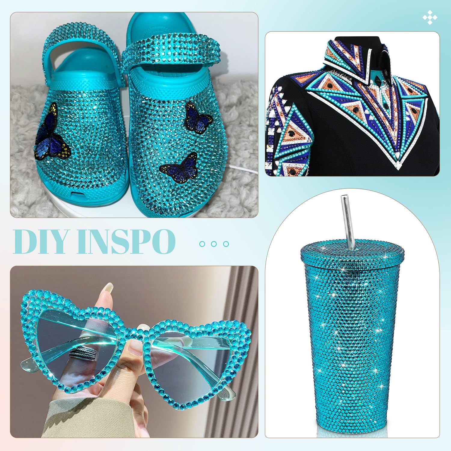 - WIDE APPLICATION -- These sparkling iridescent resin crystals are perfect for creating dazzling looks. Use them for bedazzling DIY crafts like shoes, tumblers, mugs, bottles, phone cases, popsockets, scrapbooks, photo frames, diamond paintings, greeting cards, bags, glasses, guitars, keychains, hats, masks, hair clips, bracelets, wristbands, clothing, wedding dresses, and more. Apply it to what you want to bling!