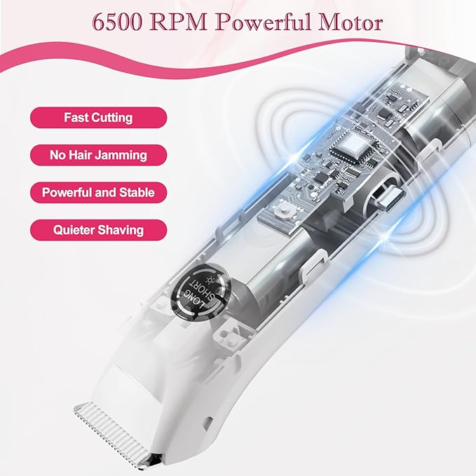- âšăUnique DesignăOur electric razor for women comes with a built-in LED display that clearly shows when the âLONG / SHORTâ upper and lower heads are working and when the LED light is on. The built-in LED light clearly illuminates the skin surface, allowing for precise shaving of every hair even in dim conditions. The charging port of our body razor is equipped with a waterproof silicone plug that prevents water from entering the charging port and damaging the bikini shaver during wet use
