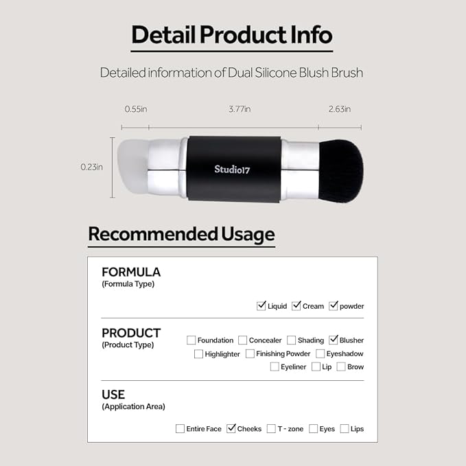 - [Korean Olive-Young makeup tool] - Studio17 is the top makeup accessory brand in Olive Young. Achieve professional blush and contouring results with our innovative dual silicone brush