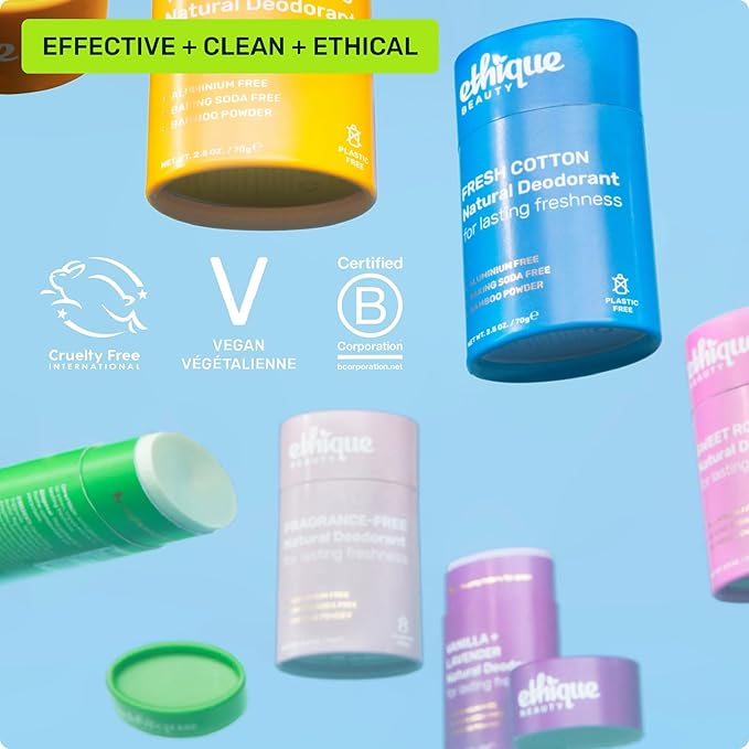 Ethique Beauty Vanilla & Lavender Deodorant Stick for Men & Women - Aluminum-Free, Plastic-Free, Vegan, Cruelty-Free, Eco-Friendly, 2.5 oz