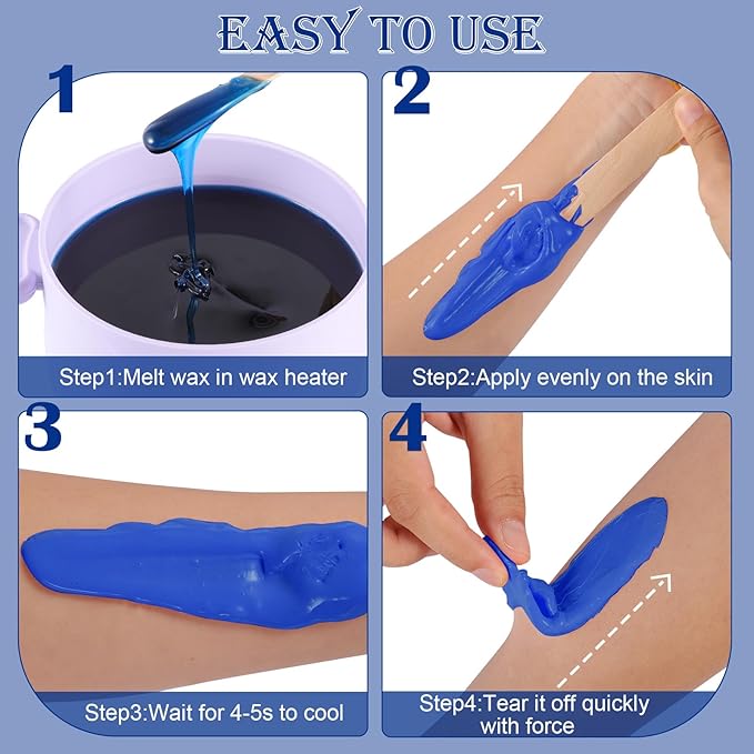 - Comfortable temperature & skin friendly: Low-melting formula ensures gentle heat that adapts to skin’s sensitivity, reducing redness and irritation. Enriched with skin-soothing agents for a calming, non-damaging waxing experience.