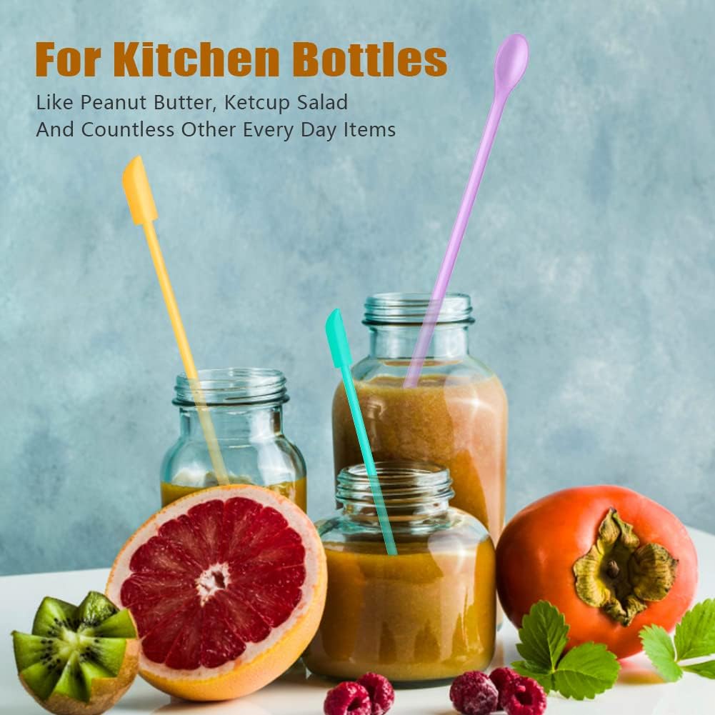- ✅【3 Sizes Fits Most Containers】: This mini spatula with 3 different sizes fits for most all different sizes of bottles of daily use. With different sizes spatula and small spoon at the end, perfect for jar using, easily to take out how any amount you need.