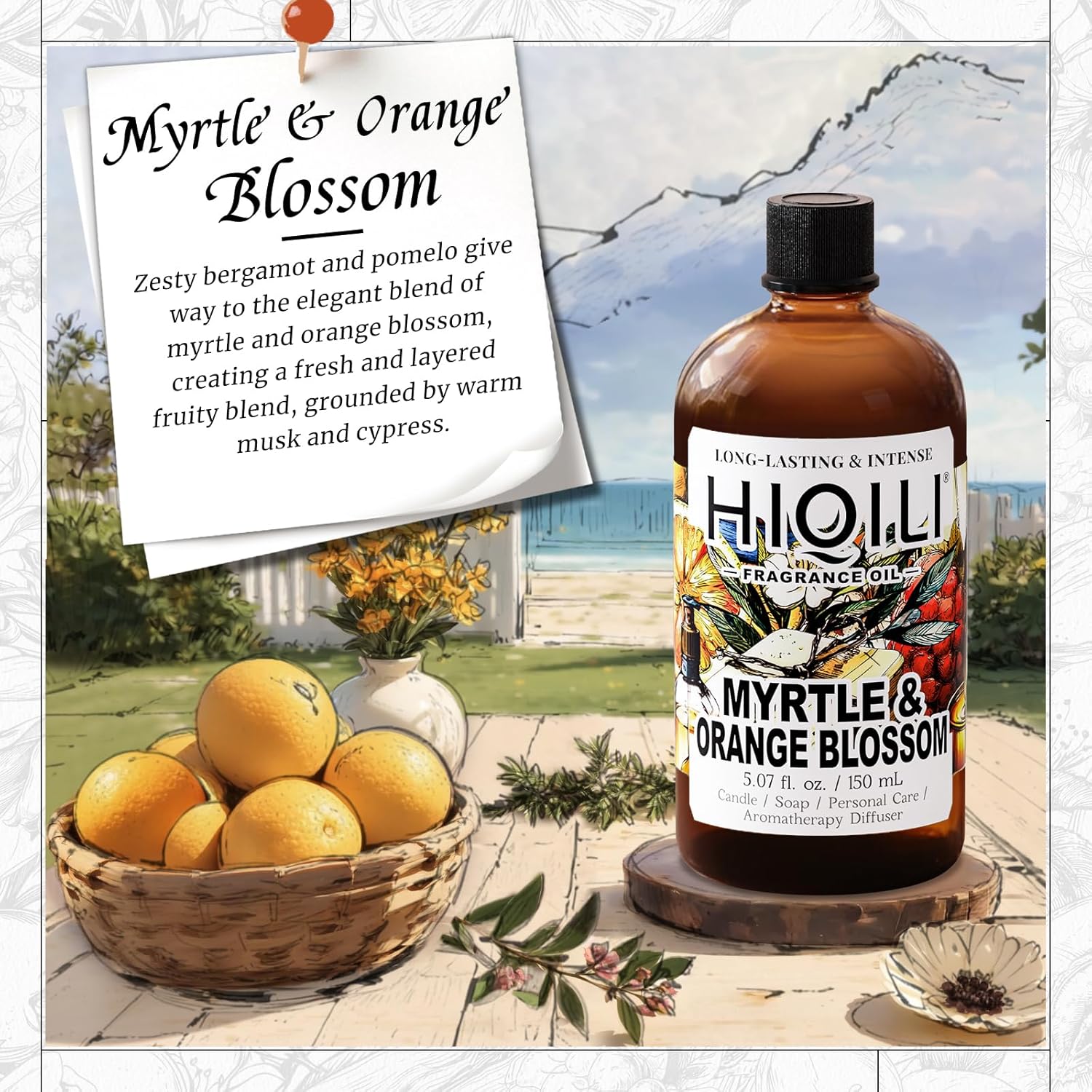 HIQILI Myrtle & Orange Blossom Fragrance Oil for Diffuser, Inspired by D.or Tera-Bella, Candle & Soap Making, Long-Lasting Citrus Floral Scent - 5.07 Fl Oz