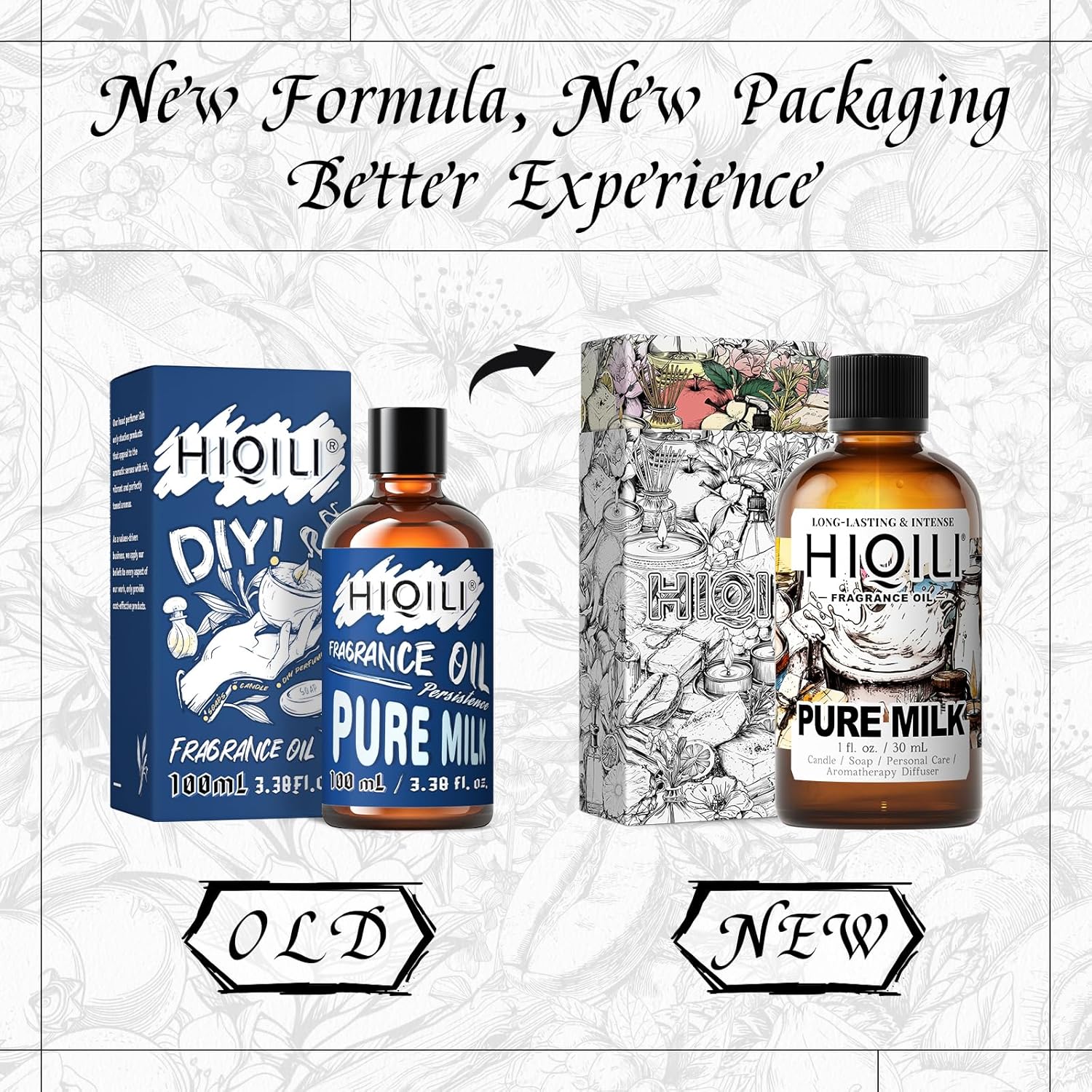 HIQILI Pure Milk Fragrance Oil for Home Diffuser, Ideal for Making Soap, Candles, Sugar Scrub, Skin & Body, Pet Safe - 1 Fl Oz