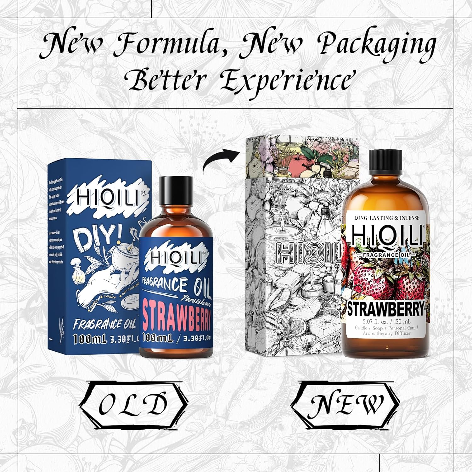 HIQILI Strawberry Fragrance Oil for Diffuser Use, Great for Candle, Soap, Body Butter Making, DIY Fruity Scent Perfume - 5.07 Fl Oz