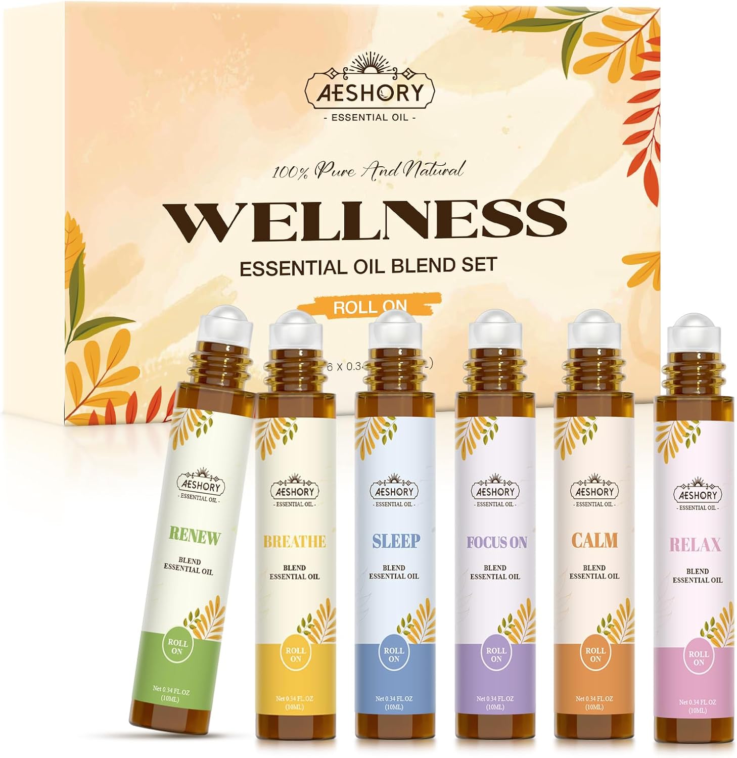 Essential Oils Roll On Set(Calm, Relax, Breathe, Focus on, Sleep, Renew), Natural Aromatherapy Oil Blend Kit with Roller Ball for Massage, Body Skin Care, Home, Relaxation Gift for Women & Men