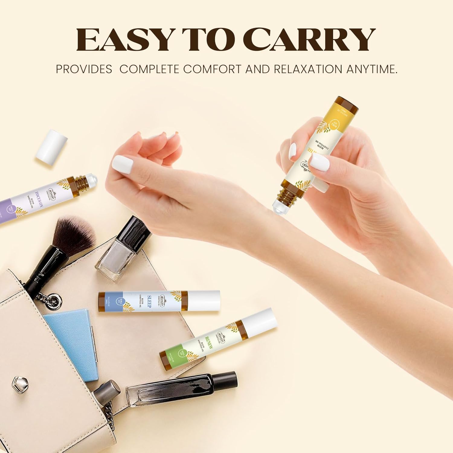 - Easy Rollerball Application : Effortlessly apply your favorite essential oil perfume with the convenient glass rollerball bottles. No spills, no mess! The compact 10ml size is perfect for your purse, gym bag, desk, or suitcase – ideal travel essentials for women and men. Get instant aromatherapy relief on-the-go, whether seeking focus at work or calm during travel.