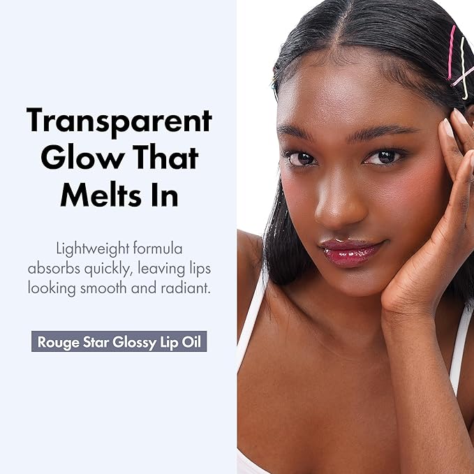 Rouge Star Glossy Lip Oil - Hydrating Lip Gloss - Non-Sticky Shine with Argan Oil & Vitamin - Deep Moisturization & Lip Softening 0.14 oz (Glossy Lip Oil)
