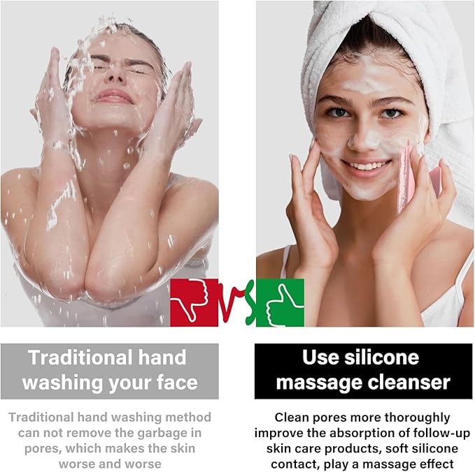- Durable silicone brush: Made of tough, non-toxic, food-grade silicone, it is more environmentally friendly, reusable, and features soft and smooth bristles that massage the face with our facial cleansing brush to cleanse pores and enhance the absorption of skincare products.